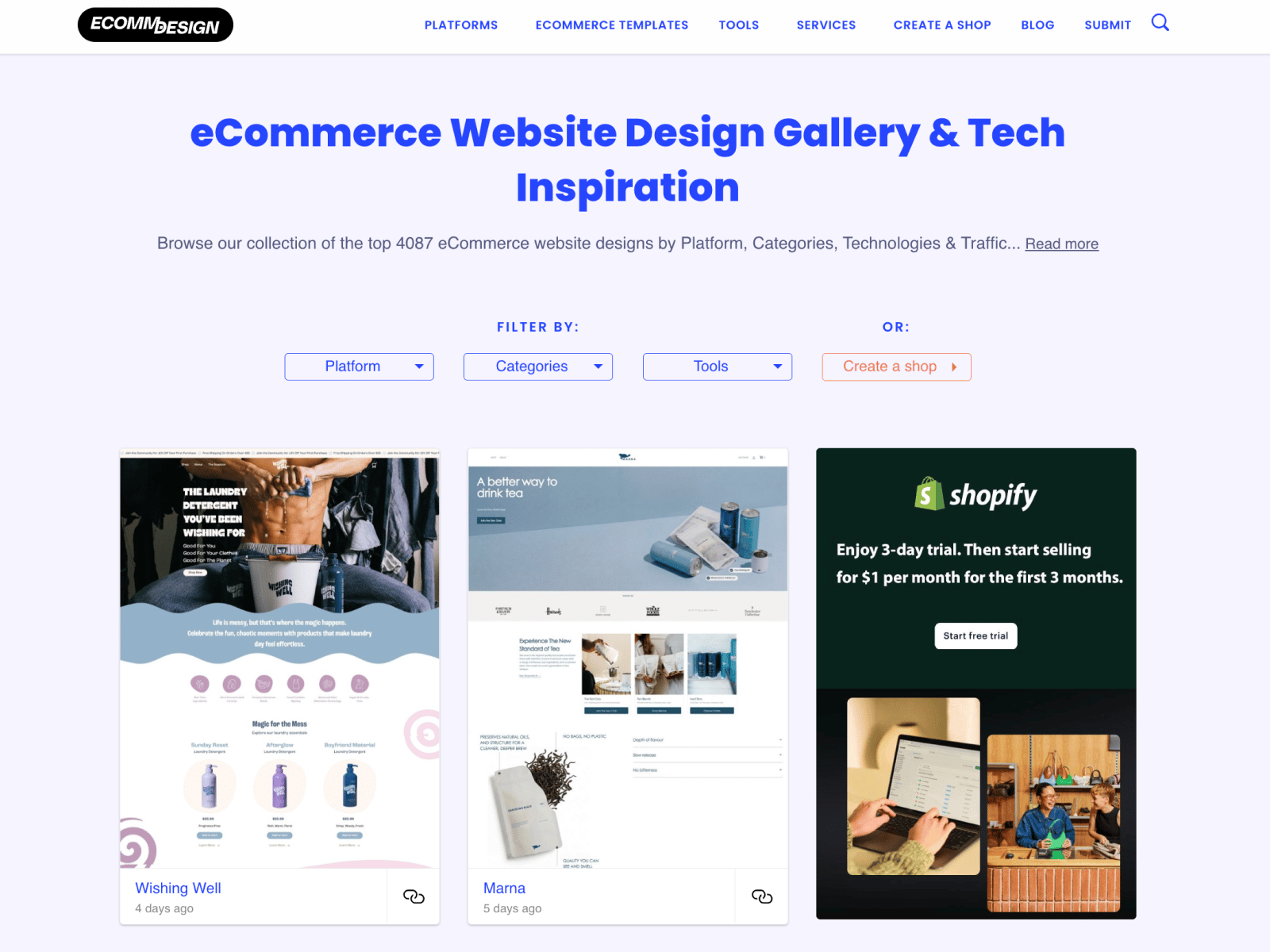 Ecommerce Design gives you a searchable gallery of over 4,000 real ecommerce stores, organized so you can find what is actually relevant to your project in minutes. No vague mood boards. No guesswork about platforms. Just a curated, filterable database of live stores with the platform, product category, tech stack, and estimated traffic attached to each one. Beyond the gallery, it includes a directory of ecommerce tools and a collection of professional services so you can move from research to execution without switching tabs. Built for designers, developers, brand owners, and agencies, Ecommerce Design keeps your decision-making grounded in real examples rather than assumptions.